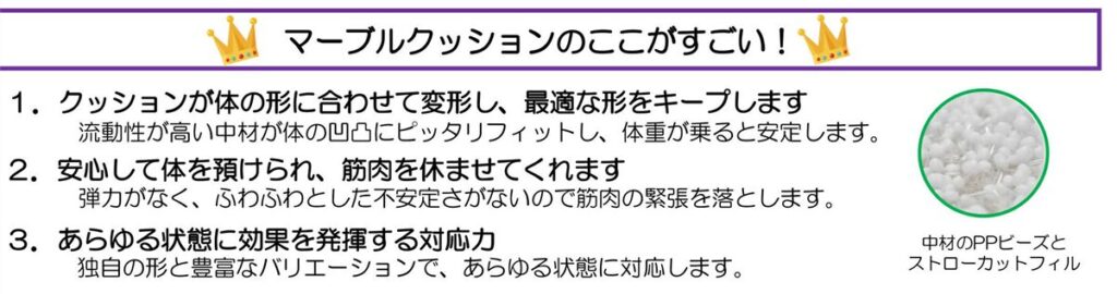 マーブルクッションは「支える」ことに優れた、筋のリラックスを促しやすくなっています。