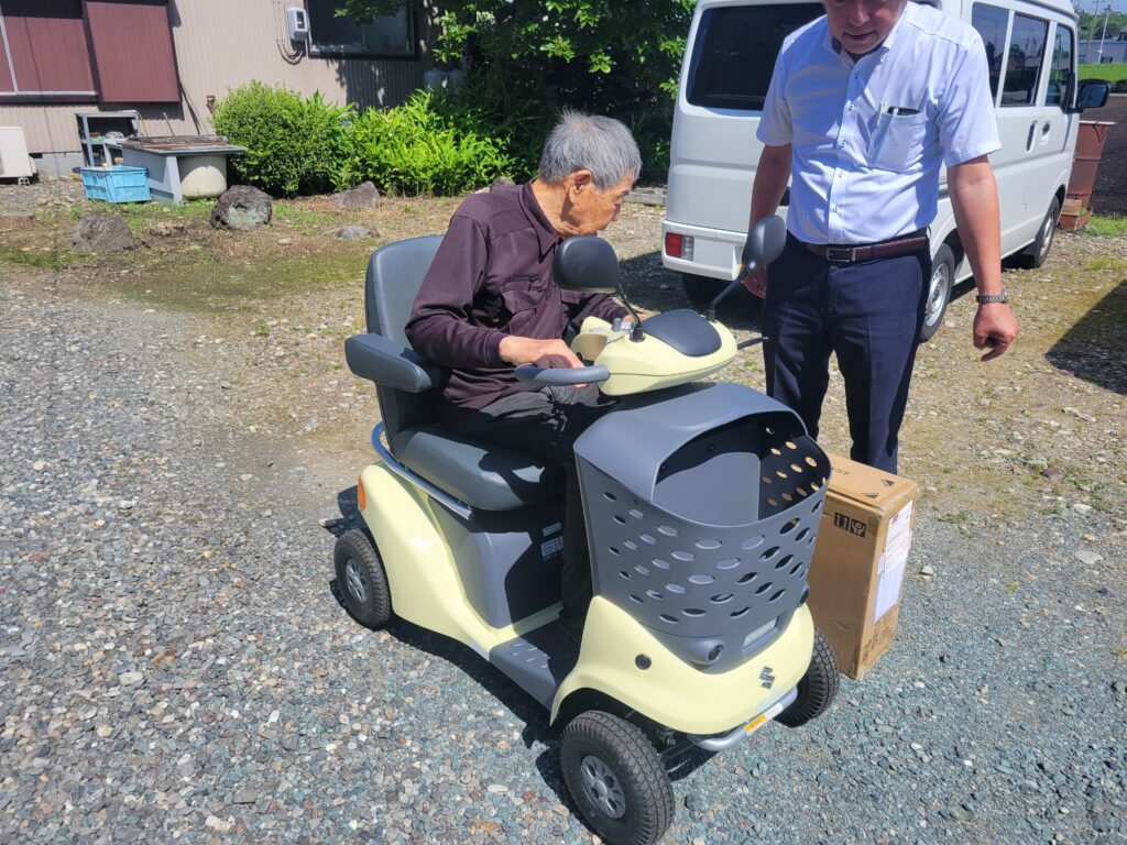 浜松市中央区で新型セニアカーの試乗をしました。まだ運転が不安そうでしたので後... -